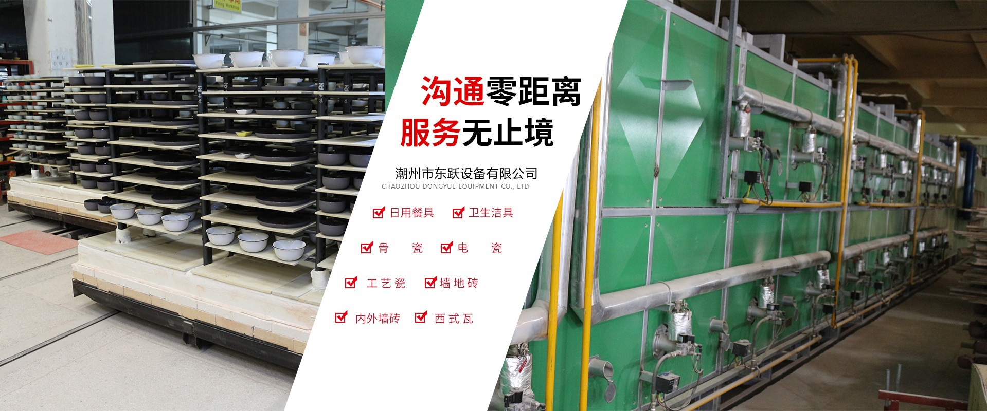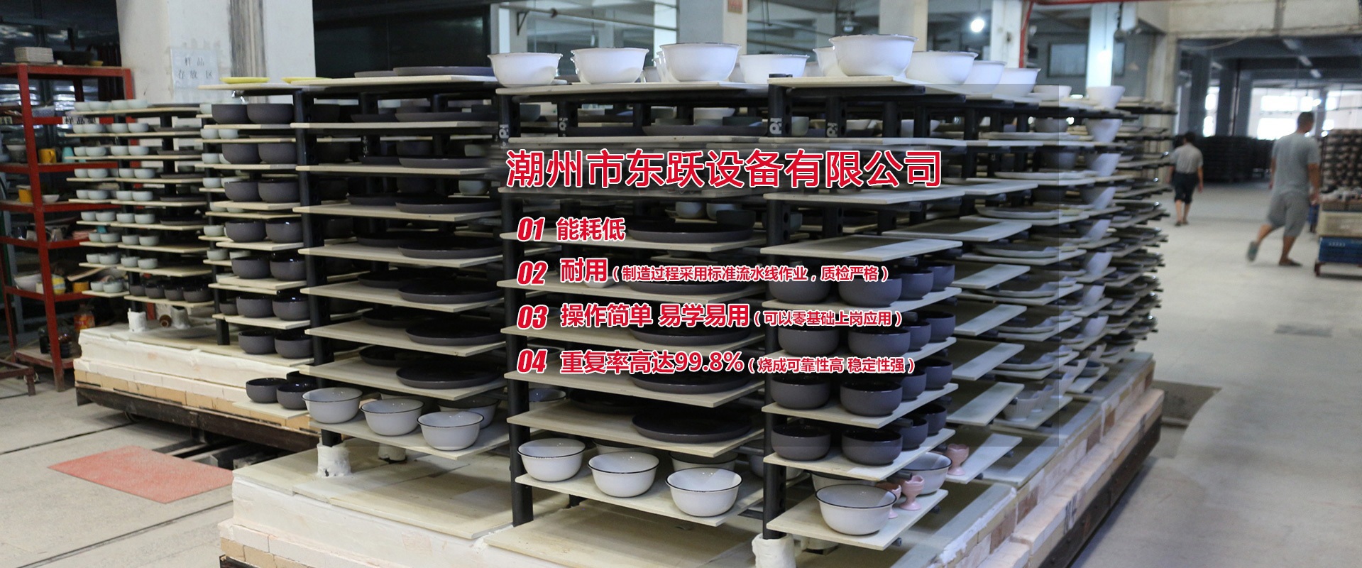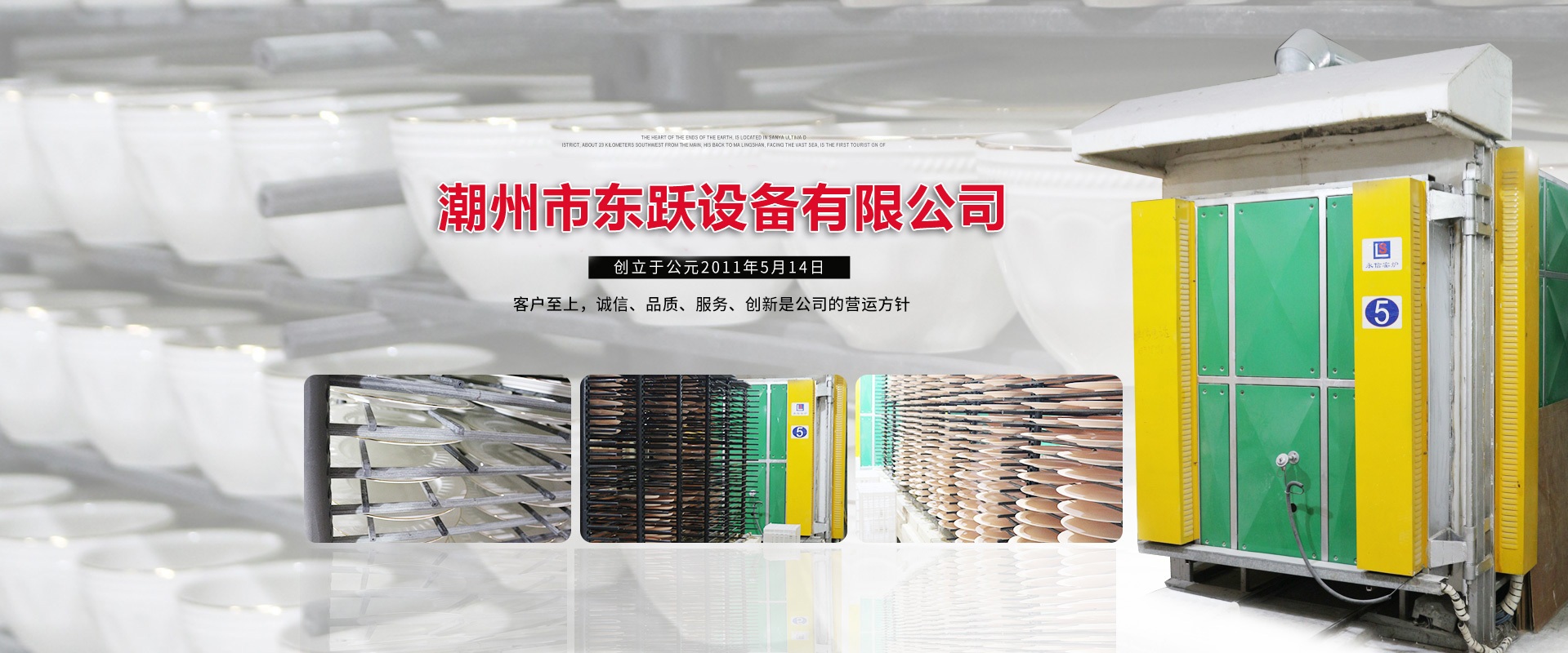 潮州市東躍設備有限公司,創立于公元2011年5月14日,經過進十年的努力,已發展成一家擁有集研發、設計、加工制造、安裝、調試與售后一體化的窯爐公司。設計理念:1.能耗低2.耐用(制造過程采用標準流水線作業,質檢嚴格)3.操作簡單 易學易用(可以零基礎上崗應用)4.重復率高達99.8%(燒成可靠性高 穩定性強)   現有設計人員10名,加工制造和安裝人員約100人,調試人員10人,售后服務人員10人,公司總人數約200人。公司本著以人為本的發展策略,不斷網絡人才,發展自動化窯爐技術。